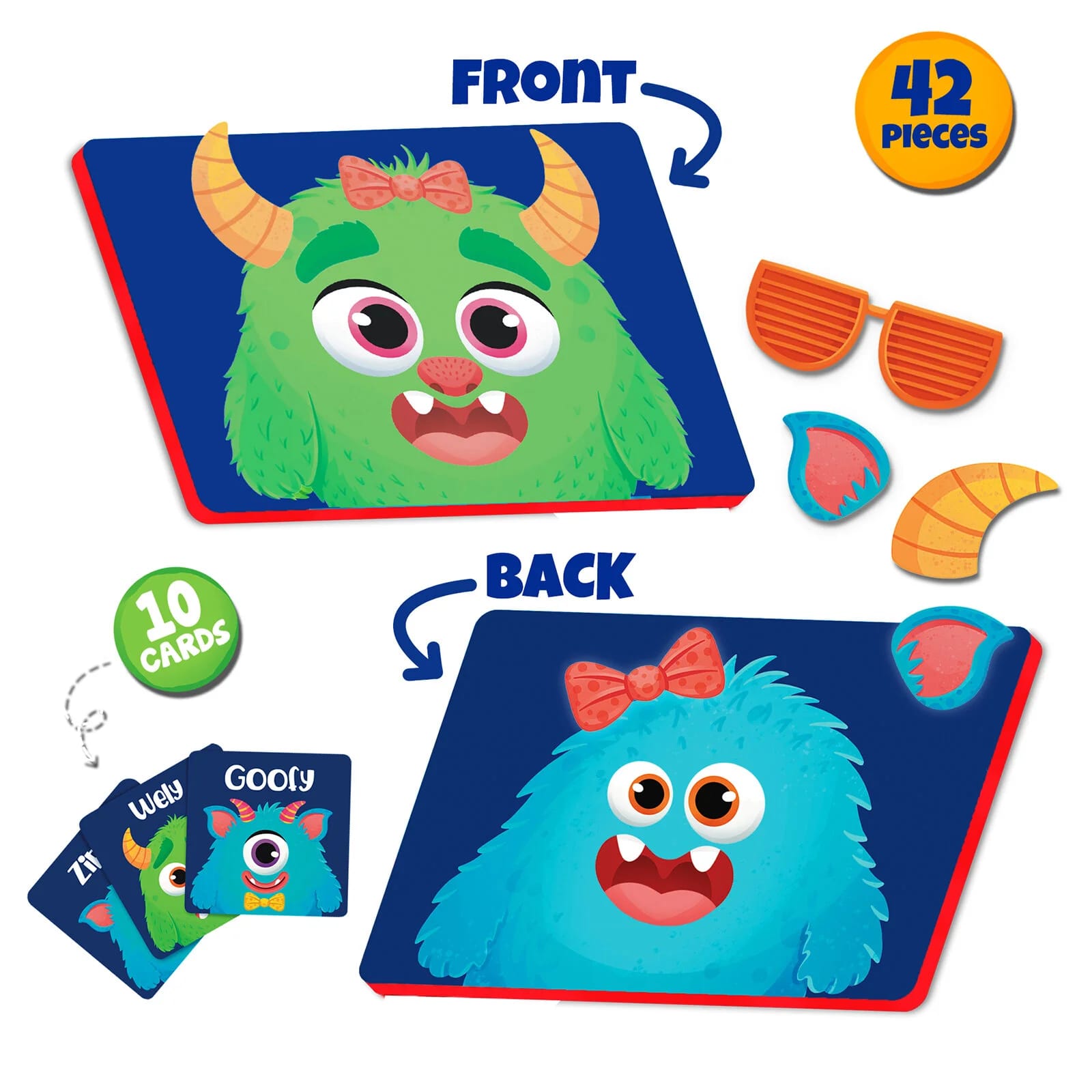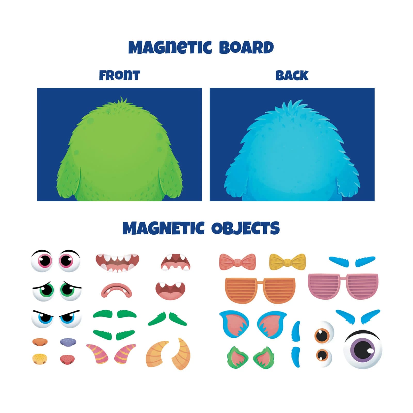 Includes 1 double sided magnetic board, 10 visual cards and 41 different objects.
