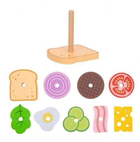 Your order is ready with Tooky Toy’s wooden Making-a-Sandwich Set, where you can open your own sandwich shack and role-play as a chef or server. Complete with order cards and sandwich sticks, this set lets you follow suggested combinations or create your own, offering endless fun for you and your friends.