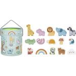Introducing the Tooky Toy woodland-themed sensory play set, where children can explore a world of soft colours and tactile fun. This engaging toy includes 15 wooden animal figurines and matching round cards; as children select a card, they reach into the bucket to find the corresponding animal. This play set enhances sensory awareness and cognitive skills, stimulating imagination and problem-solving in a charming woodland setting.