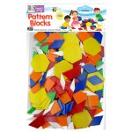 Pattern Blocks are a collection of 6 shapes in 6 colours – green triangles, orange squares, blue parallelograms, tan rhombuses, red trapezoids, and yellow hexagons.