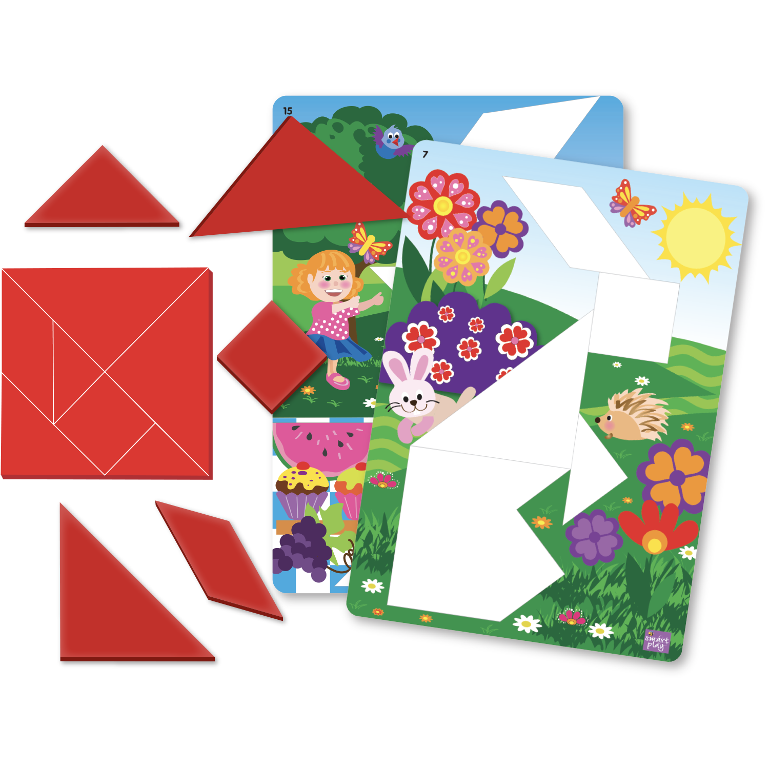 • 7 Pieces sturdy plastic tangram puzzle